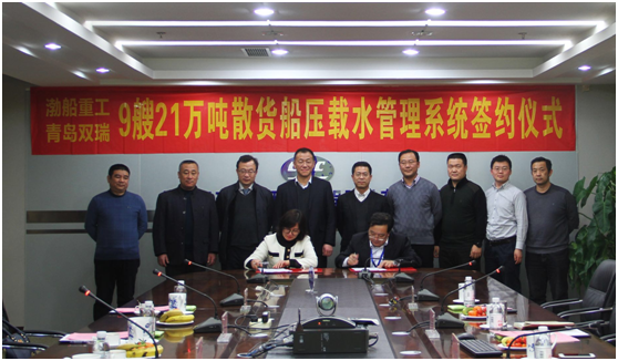 1月10日,渤海船舶重工有限責(zé)任公司(以下簡(jiǎn)稱渤船重工)與青島雙瑞海洋環(huán)境工程股份有限公司(以下簡(jiǎn)稱青島雙瑞)在青島雙瑞舉行了9艘21萬(wàn)噸散貨船壓載水管理系統(tǒng)簽約儀式。渤船重工黨委書記、總經(jīng)理孫東明一行5人和青島雙瑞公司相關(guān)領(lǐng)導(dǎo)出席了簽約儀式。