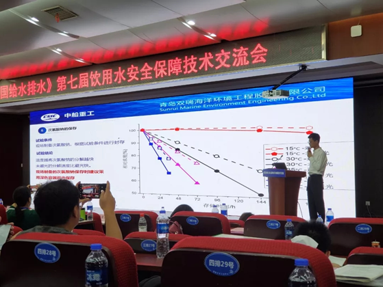 本次會議是中國給水排水領(lǐng)域一次高規(guī)格盛會,來自清華大學(xué)、上海市政工程設(shè)計院、長沙水業(yè)集團(tuán)等數(shù)十家高校、設(shè)計院和水務(wù)集團(tuán)的400余名代表參會,針對保障我國飲用水安全進(jìn)行技術(shù)交流。青島雙瑞公司工程師在會上作《次氯酸鈉現(xiàn)場制備過程中關(guān)鍵控制因素的研究及工程應(yīng)用》專題報告,對公司飲用水消毒技術(shù)和產(chǎn)品進(jìn)行推介,得到參會嘉賓的高度關(guān)注和肯定。