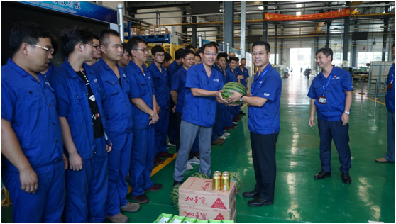 入伏以來,島城氣溫節(jié)節(jié)攀升,公司各個車間、食堂后廚等特殊工位更是熱浪滾滾、酷暑難耐。近日,為確保員工身體健康、安全工作,在公司工會和綜合部的組織下,公司領(lǐng)導(dǎo)一行來到組裝、熔煉、加工等車間、物資部庫房、食堂后廚等,為一線員工送上消暑西瓜、柑橘、茶葉等慰問品,勉勵大家戰(zhàn)勝高溫考驗,讓廣大員工深刻感受到公司的關(guān)愛。