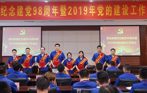 為熱烈慶祝中國共產(chǎn)黨成立98周年,深化落實(shí)七二五所黨的建設(shè)工作會(huì)議精神,青島雙瑞公司隆重召開2019年黨的建設(shè)工作會(huì)議。公司總經(jīng)理兼黨總支書記付洪田傳達(dá)了七二五所2019年黨的建設(shè)工作會(huì)議精神,并作2019年黨建工作報(bào)告。大會(huì)對(duì)2018年度優(yōu)秀共產(chǎn)黨員、優(yōu)秀黨務(wù)工作者和工會(huì)活動(dòng)積極分子進(jìn)行了表彰。
